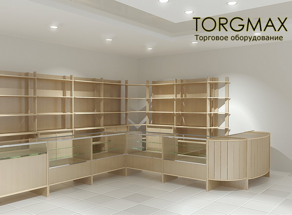 Размещение секций деревянных стеллажей, в ряду с торговыми прилавками, позволит эффективно заполнить торговую площадь, а также сделает выставку товаров максимально широкой, удобной и доступной покупателю.