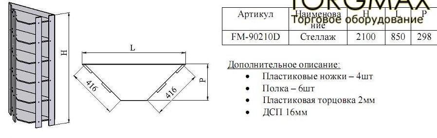 Торговый стеллаж угловой внутренний FM-90210D производится в стандартном размере и цвете, указанным в характеристике товара. Цвет исполнения, по умолчанию, белый RAL 9016 или "вишня". За не стандартный цвет покраски ДСП, стоимость стеллажа увеличивается на 10%. Срок изготовления составлет 7 рабочих дней. По желанию заказчика, мы можем изготовить стеллаж по индивидуальным размерам и цветовым исполнениям, стоимость и сроки изготовления, в таком случае, уточняйте у менеджера - консультанта.