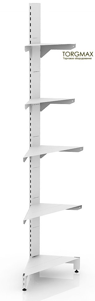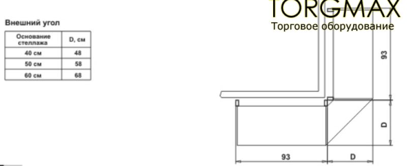 Стандартные размеры полок составляют 40см (две нижние полки) и 30см - две верхние, размер и количество полок меняются в зависимости от специфики заказа, дополнительно полки можно укомплектовать пластиковыми наценниками. Угловые стеллажи, как правило, используются для соединения в одну линию нескольких секций стеллажей буквой "Г" для продажи как товаров продовольственной группы, так и товаров промышленного производства. Для сборки стеллажа не требуются дополнительные соединительные элементы и специальные инструменты, что значительно облегчает процесс сборки и установки.