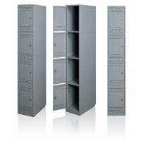 Стандартная металлическая камера хранения состоит из 4, 8, 12, 16 ячеек. Каждая секция имеет замок с индивидуальным ключем. Для того, чтобы одежда не «задыхалась», в локерах имеются специальные вентиляционные отверстия.