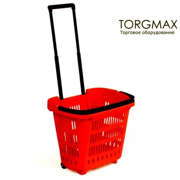 Корзина покупательская на 2-х колесиках с выдвижной ручкой. Обьем 40 литров. Цвет красный, зеленый