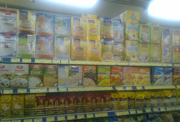 Из стеллажей было установлено 7 секций эконом варианта для размещения упакованных продуктов. Также были установлены секции для продажи хлеба и хлебобулочной продукции, конфет и печенья. Для расчета покупателей и облегчения процесса упаковки купленного товара мы установили четыре деревянных прилавка, два оборудованы стеклом и являются своеобразной прикассовой витриной.